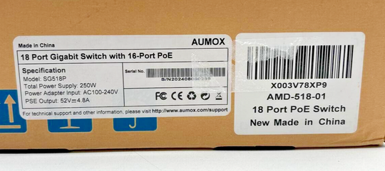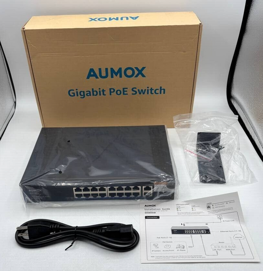 Aumox SG518P 18-Port Ethernet Gigabit Switch w/ 16-Port PoE & 2 Uplink Ports