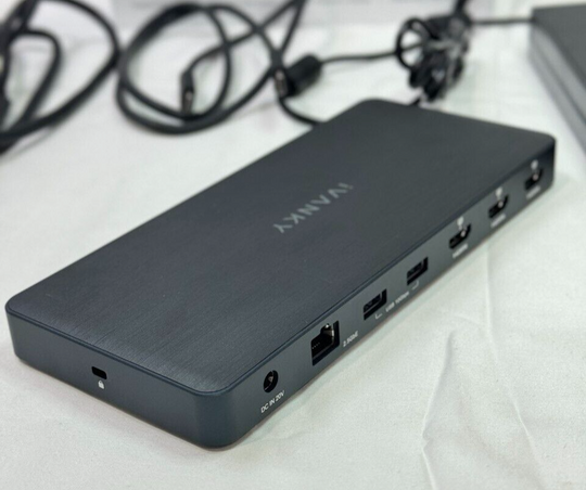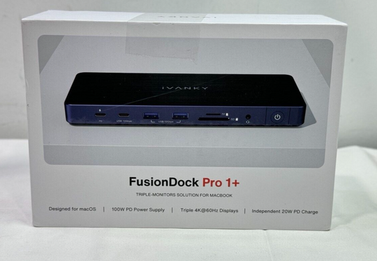 Brand: IVANKYType: Does not applyPackage Dimensions LxWxH: 8.58x3.35x2.91 InchesSize: 14-in-1Weight: 2.6 Pounds Ivanky 14-in-1 FusionDock Pro 1 MacBook DisplayLink Docking Station (RG145) Item has been used before - Will show signs of usage such as scuff...Regular price $120.00Quick view -
