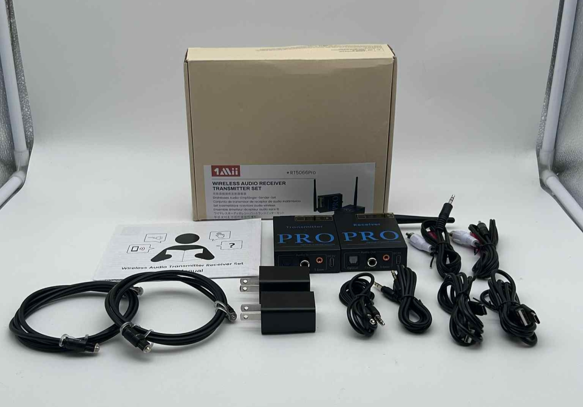 - Connect your TV, DVD player, or PC to your powered subwoofer, stereo, amplifier, or soundbar without cables using the 1Mii RT5066 2.4GHz wireless transmitter and receiver kit. No HDMI required—simple plug-and-play setup with RCA or 3.5mm AUX.