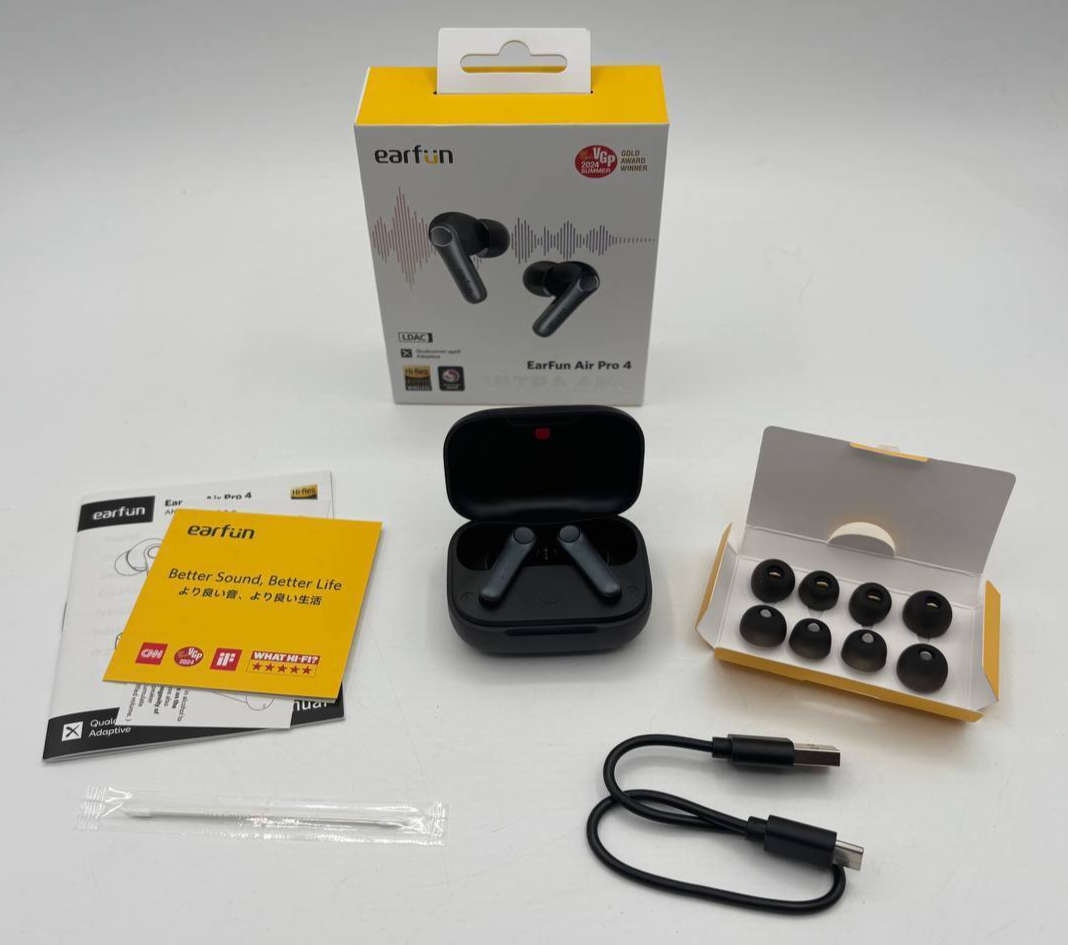 EarFun Air Pro 4 Adaptive Hybrid Noise Canceling Wireless Earbuds, Black (GB500)