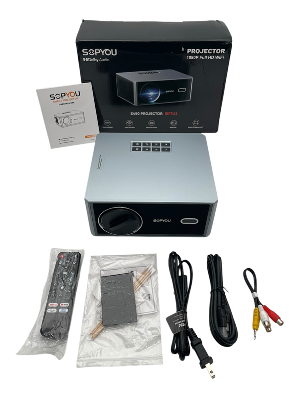SOPYOU S450 Netflix Smart WiFi Bluetooth Projector 4K 450" Auto Focus (MW223)