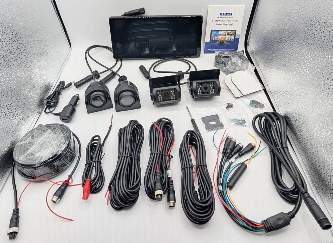 RV Backup Camera System with 10.36’’ 4K Monitor for RV Truck Bus Trailer with 4 Rear/Side View 1080P HD Cameras(CB52)