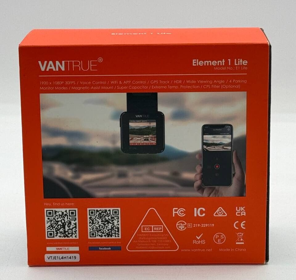 Vantrue Element 1 Lite Dash Cam Camera OPEN BOX NEW (TF334)