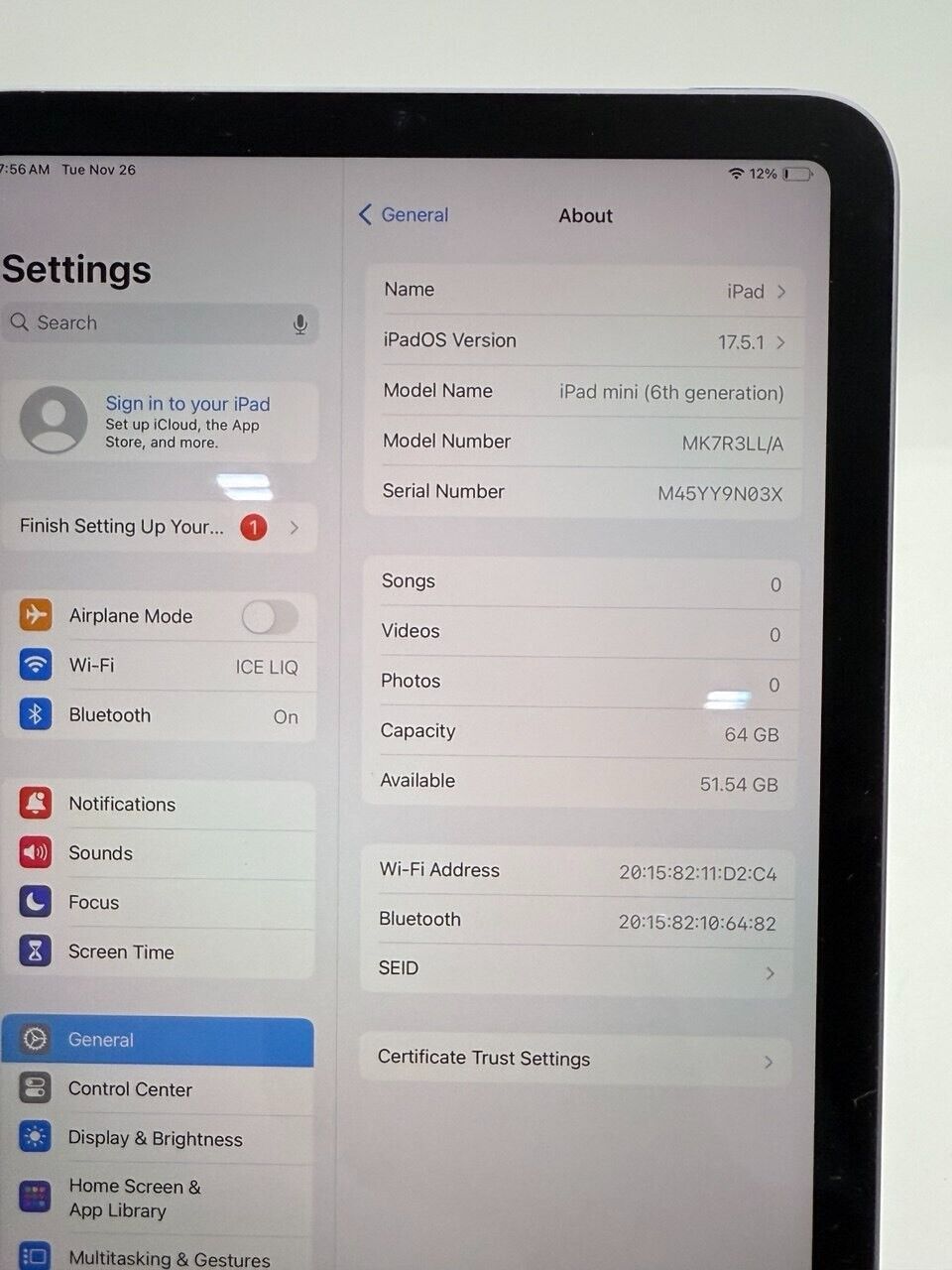 Model: Apple iPad mini (6th Generation)