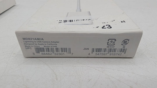 Connector A: Lightning (Male)Connector B: USB Type-A (Female)/Lightning(Female)MPN: MK0W2AM/AUnit Quantity: 2Unit Type: UnitColor: WhiteUPC: 888462314527Compatible Brand: For AppleBrand: AppleType: AdapterApple Lightning to USB 3 Camera Adapter A1619 (AT907)Item has been used before - Will show signs...Regular price $30.00Quick view