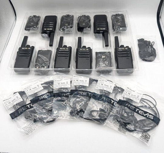 Brand: RetevisFrequency Range: FRSType: EarpieceNumber of Channels: 16Memory: 16 ChannelsColor: BlackModel: RETEVIS RT68Features: Portable,CircuitCountry/Region of Manufacture: ChinaTuner Technology: FRS Retevis RT68 Walkie Talkies Rechargeable, Two Way Radios with Charger - 6 pack (AR131) Item is New in...Regular price $99.99Quick view -