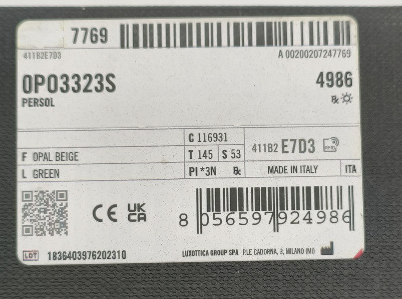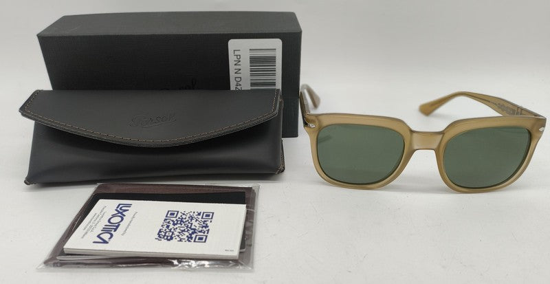 Persol Sunglasses - PO3323S - Square - Opal Beige - Green 56mm Lenses (MJ867)