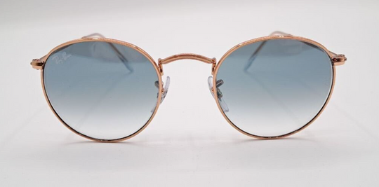 Ray-Ban RB3447 Round Metal Sunglasses - Rose Gold/Clear Gradient Blue