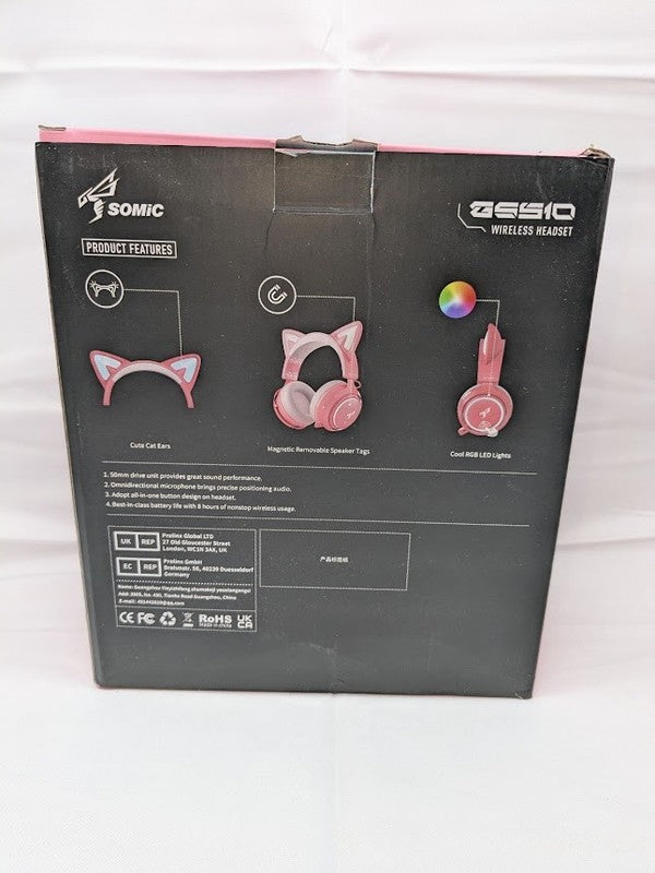 SOMIC GS510 Pro Wireless Cat Ear Gaming Headphones Pink - Bluetooth, RGB (A22)