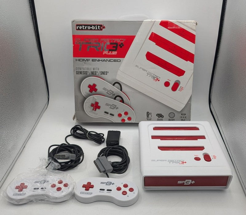 Retro-Bit Game Console Super Retro Trio Plus, Red/White - FOR PARTS OR REPAIR (AT872)