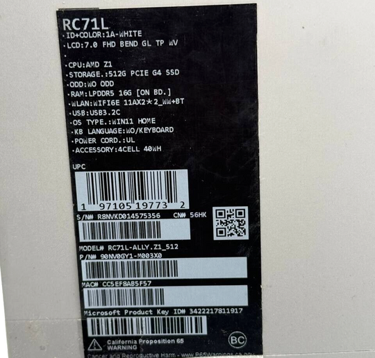 ASUS ROG Ally RC71L 7" 120Hz FHD 1080p 512GB Gaming Handheld READ NO ACCESSORIES