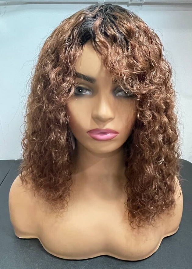 JOEDIR Glueless Ombre Curly Wig with Bangs 14" 150% Density