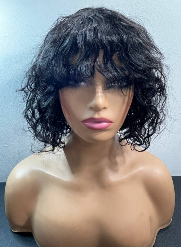 FASHION IDOL Water Wave Bob Wig With Bangs 10" 150% Density