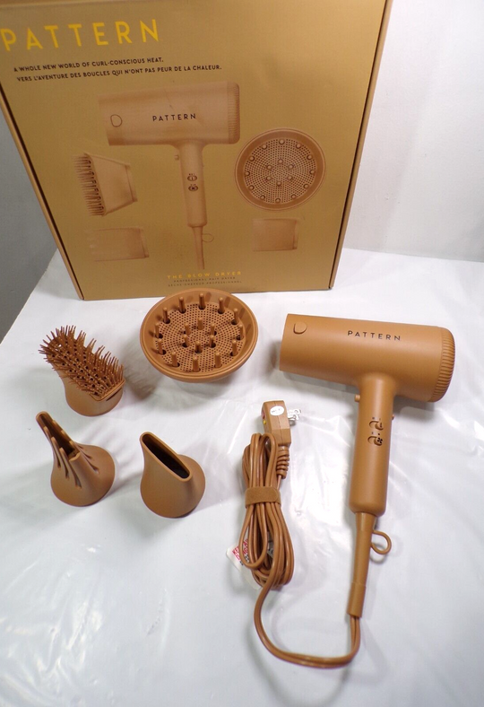 Brand: PATTERNType: Blow DryerPower Source: ElectricSize: Full SizeColor: CaramellaModel: PATT322722Features: 4 Attachments,Adjustable Heat Settings,Ion on/off switch,Lock-in Cold Shot Button,Removable FilterNumber of Temperature Settings: 3Number of Speeds: 2PATTERN by Tracee Ellis Ross Blow Dryer with Four Attachments...Regular price $169.99Quick view -