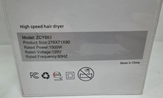 IsListingCreatedFromScratch: FalseBrand: Cosy CompasionsType: High Speed Hair DryerFeatures: Adjustable Heat Settings,Diffuser,Extra Power,Ionic TechnologyColor: Dark GrayPower Source: ElectricModel: ZCY888-BPower: 1500 WNumber of Temperature Settings: 3Number of Speeds: 6Country/Region of Manufacture: ChinaHair Dryer with Diffuser, High-Speed 150000 RPM...Regular price $36.00Quick view
