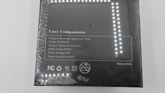 Brand: Cosy CompanionsType: Standard Hair DryerDepartment: Unisex AdultsPower Source: ElectricColor: BlackModel: Cosy Companions ZCY883Features: High SpeedCountry/Region of Manufacture: ChinaPower: 1500 W Cosy Companions High-Speed Brushless Motor Negative Ionic Blow Dryer - BLACK (MD98) Item is Brand...Regular price $48.99Quick view -