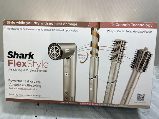 Brand: SharkType: Standard Hair DryerColor: BeigeFeatures: Dryer AttachmentUPC: 0622356593199 Shark FlexStyle Air Styling and Drying System HD430 (JW567) Item has been used before - Item will show signs of usage such as scuff marks, dirt, scratches...Regular price $150.00Quick view -