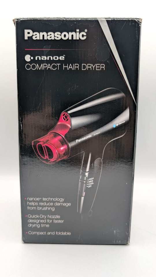 IsListingCreatedFromScratch: FalseBrand: PanasonicType: Travel Size DryerColor: BlackPower Source: ElectricModel: EH-NA27-KMPN: EH-NA27-KUPC: 885170271364Features: easy to pack,Cool TipPanasonic nanoe Compact Hair Dryer EH-NA27-K, Black/Pink (AR275)Item has been used before - Will show signs of usage such as scuff...Regular price $37.99Quick view -