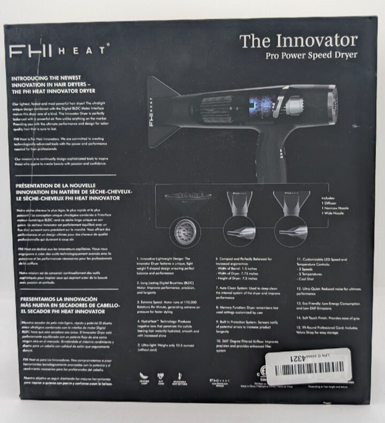 Brand: FHI HeatType: Professional Hair DryerPower Source: ElectricColor: BlackModel: IN2003UPC: 848618006669IsListingCreatedFromScratch: FalseFeatures: Adjustable Heat SettingsMPN: IN2003Number of Temperature Settings: 3Number of Speeds: 3FHI Heat Pro Power Speed Professional Hair Dryer IN2003 (AR278)Item is New in Open Box....Regular price $135.00Quick view -