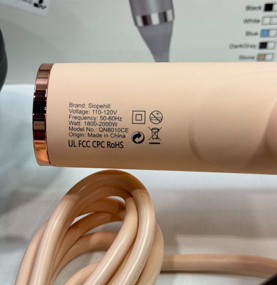 Brand: SlopehillType: Professional Hair DryerModel: slopehill qn8010ceMaximum Temperature: 140 °FPower: 2000 W Slopehill Professional Hair Dryer (RG192) Item has been used before - Will show signs of usage such as scuff marks, scratches, dirt, dust, etc....Regular price $45.00Quick view -