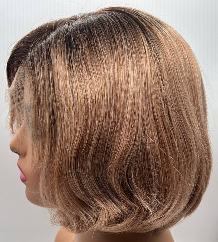BLONDE UNICORN 12in Blonde & Brown Human Hair Bob With Bangs 180% density (SA439)