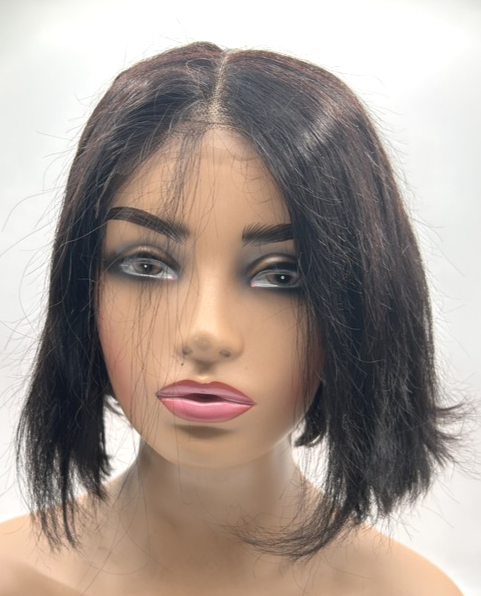 EQ DUOUPA 5x5 8in Natural Black Glueless Straight Human Hair Bob Wig (SA682)