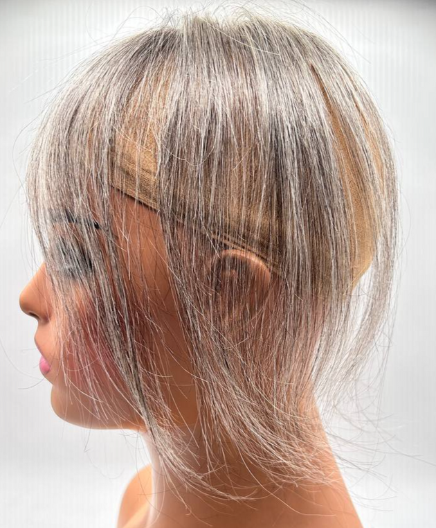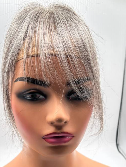 REECHO 10 Gray Straight Human Hair Topper With Bangs 3.4" x 3.2"
