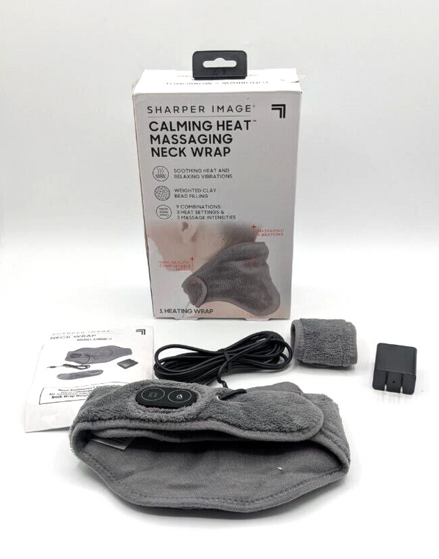 Sharper Image Calming Heat Neck Wrap, Vibrating Massaging Electric Heated Scarf
