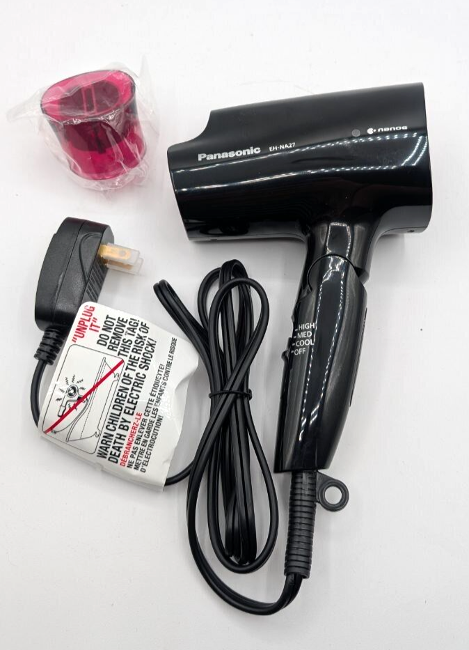 • The EH-NA27 mini blow dryer packs 1400 watts of power for fast, even drying; apply high, medium or cool airflow settings for different hair types and styles.