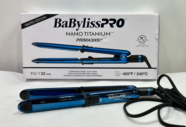 BaBylissPRO Nano Titanium Prima3000 1 ¼" Black & Blue Flat Iron | BNTMB3000TUC
