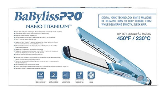 Sold out                Vendor: BaByliss PRO BaBylissPRO Nano Titanium Ionic Flat Iron Hair Straightener, 1 3/4" Hair Straigh IsListingCreatedFromScratch: FalseSize: Travel SizeNumber of Temperature Settings: 5Department: WomenUnit Quantity: 1Unit Type: UnitPower Source: ElectricMPN: BNT4094TUCHeating Plate Material: TitaniumColor: BlueBarrel Size: 1 inBrand: BaByliss PROHair Type: All Hair TypesFeatures: Indicator LightMaterial: CeramicMaximum Temperature: 450 °FType: StraightenerModel:...Regular price $40.00Quick view