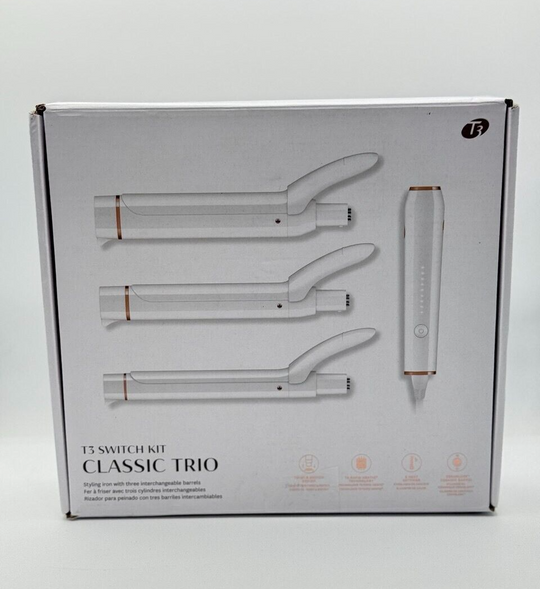 Sold out          Vendor: T3 T3 Switch Kit Curl Trio Professional Ionic 3 Interchangeable Barrel Curling Iron Brand: T3Type: Curling IronSize: RegularModel: 77563Features: Interchangeable BarrelsMPN: 77563 T3 Switch Kit Curl Trio Professional Ionic 3 Interchangeable Barrel Curling Iron (RG432) Item has been used before - Will show signs of usage such as scuff...Regular price $100.00Quick view