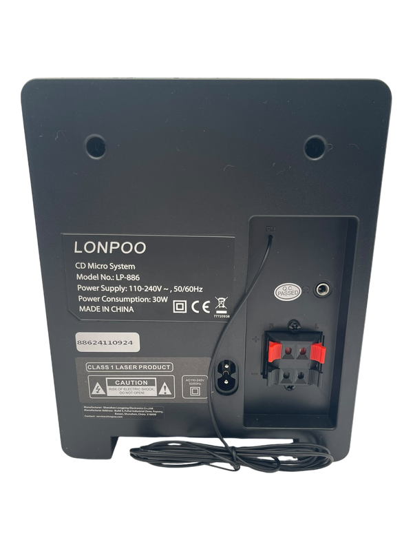 LONPOO LP-886BT Compact Stereo System CD Bluetooth FM USB 30W Black (BD21)