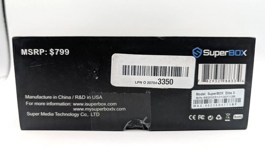 Color: SilverSurround Sound Formats: Dolby SurroundBrand: SuperBoxAudio/Video Outputs: HDMI,S/PDIF,USBType: BoxUnit Type: UnitModel: SuperBox Elite 3Connectivity: Ethernet Port,HDMI,HDMI Port,IR Connector,Memory Card Slot,USB Port,Wi-FiOperating System: AndroidStorage Capacity: 64 GBCountry/Region of Manufacture: ChinaUnit Quantity: 1 SUPERBOX Elite3 TV BOX...Regular price $194.99Quick view -