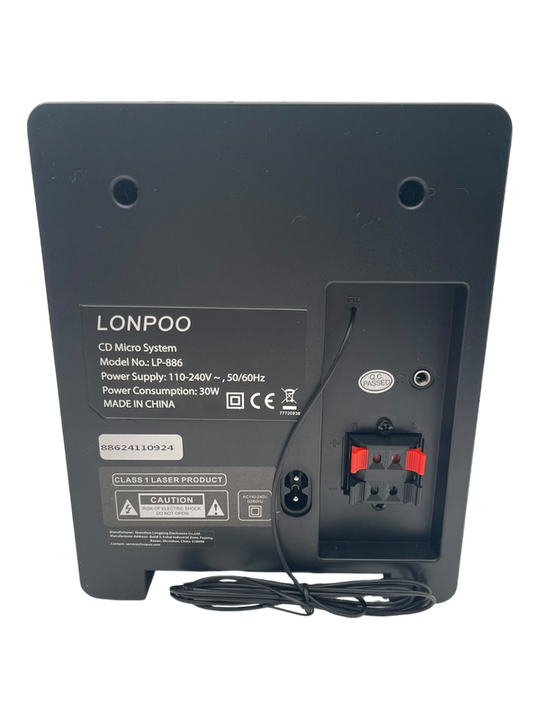 LONPOO LP-886BT Compact Stereo System CD Bluetooth FM USB 30W Black
