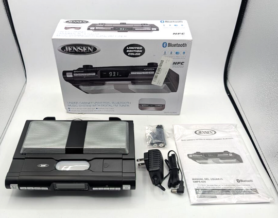 Color: BlackUPC: 077283902819MPN: SMPS628Band: AM/FMBrand: JensenType: Music SystemUnit Type: UnitAudio Inputs: BluetoothItem Height: 3.5Model: SMPS-628BKConnectivity: BluetoothFeatures: BluetoothUnit Quantity: 1RMS Power: 120V AC Adaptor (included)Jensen Modern Wireless Under Cabinet Kitchen Universal Bluetooth Music System (AR700)Item is New...Regular price $37.50Quick view -