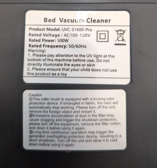 Color: BlackBrand: JPHYLLType: Bed VacuumFilters: HEPAModel: UVC-S1600-ProIncluded Accessories: FilterFeatures: CompactCord Type: CordedPower: 500 WItem Weight: 3.3 Lb Bed Vacuum Cleaner Mattress Vacuum with UV 16Kpa Suction (AR98) Item has been used before - Will show signs...Regular price $26.99Quick view -