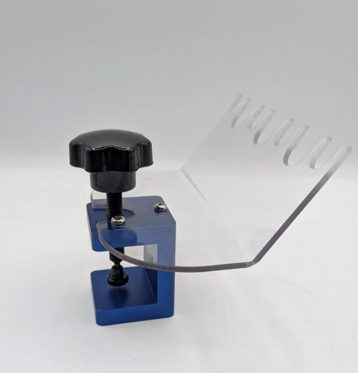 - AHS's medicine vial holder easily attaches to allow any surface up to 1.25" thick. Holds a variety of vial sizes including: 2, 5, 10, 20, 30 mL (cc)