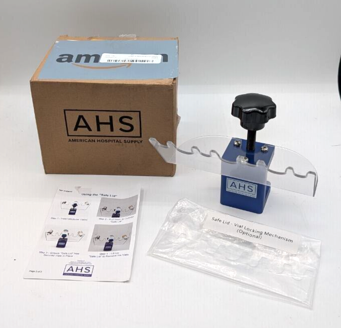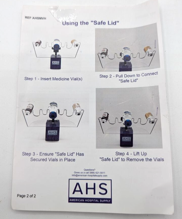 - Hands free medicine vial holder provides safe access to medication vials to reduce risk of accidental needle-stick injuries