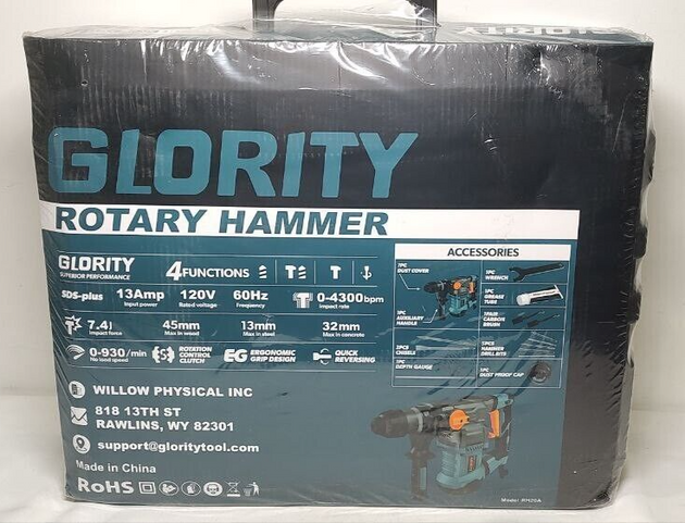 GLORITY 1-1/4 Inch SDS-Plus 13 Amp Heavy Duty Rotary Hammer Drill