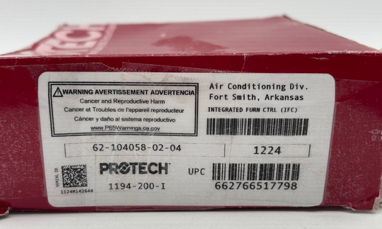 Brand: ProTechType: Furnace Control BoardModel: 62-104058-02-04ProTech 62-104058-02-04 Integrated Furnace Control Board (IFC) (GR798) Unused in open box. Minor cosmetic damage may be present (light scratches, scuffs, dust, etc.) Item has been handled for inspection - Please...Regular price $88.00Quick view