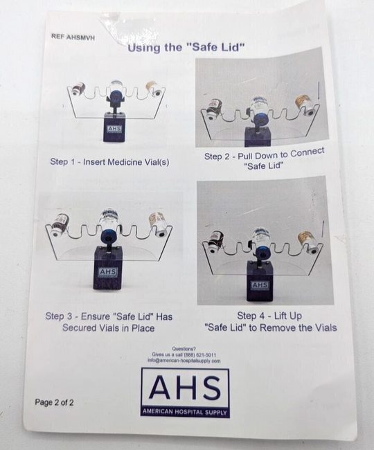 Brand: American Hospital Supply®IsListingCreatedFromScratch: FalseMPN: AHSMVHCountry/Region of Manufacture: ChinaAHS American Hospital Supply Medicine Vial Holder, Hands-Free Vial Holder (AR321)Item has been used before - Will show signs of usage such as scuff marks, scratches, dirt, dust, etc....Regular price $49.99Quick view -