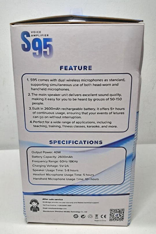 Brand: WinBridgeType: PA SystemModel: WinBridge 95MPN: S95 WinBridge Voice Amplifier Bluetooth 5.3 Wireless Headset Mirophone/Handheld Mic (MD260) Item is Brand New. Outer packaging may have cosmetic damage - does not affect the item itself. Please view all pictures. Includes...Regular price $60.00Quick view -