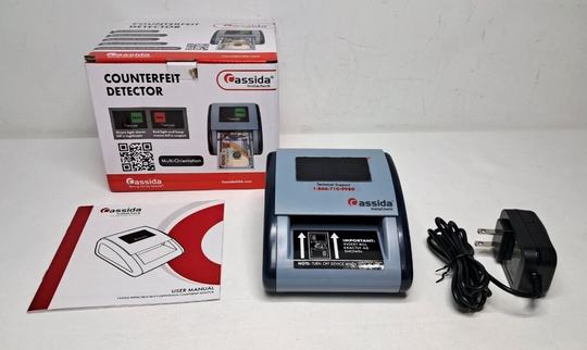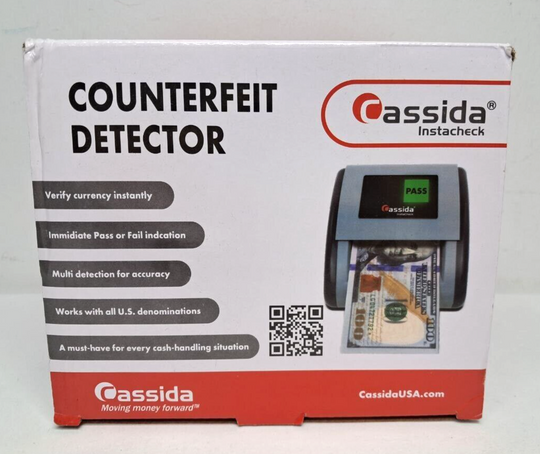 Brand: CassidaCounterfeit Detection Equipment Type: MachineModel: Cassida InstaCheckMPN: Does Not Apply Cassida InstaCheck Small Footprint Automatic Counterfeit Detector with Infrared (MD296) Unused in open box. Minor cosmetic damage may be present (light scratches, scuffs, dust, etc.)...Regular price $69.99Quick view -