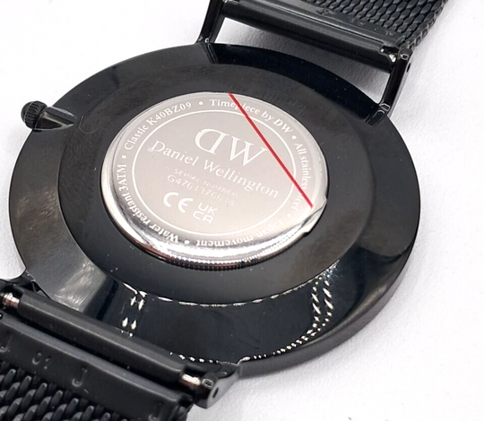 Closure: Double-Locking Fold-Over ClaspBand/Strap: BraceletDepartment: MenBezel Type: 12-HourWatch Shape: RoundFeatures: 12-Hour Dial,Water-ResistantWater Resistance: 30 m (3 ATM)Reference Number: Does not applyBrand: Daniel WellingtonType: WatchBand Color: BlackDisplay: AnalogueDaniel Wellington Classic Mesh Onyx 40mm Watch - NEEDS NEW...Regular price $44.99Quick view -