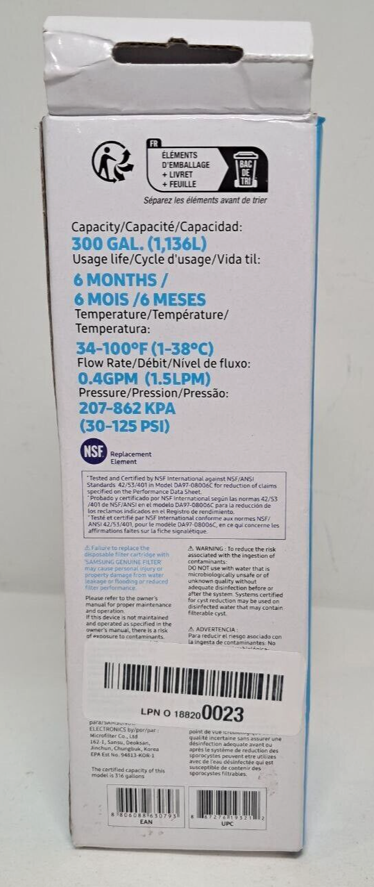 MPN: HAF-QIN/EXPSuitable For: HouseholdCompatible Brand: For SamsungContaminant Removal: Chlorine Taste & OdorBrand: SamsungCompatible Model: For Samsung DA97-08006CType: Water FilterModel: HAF-QIN/EXP SAMSUNG Genuine Filter for Refrigerator Water and Ice HAF-QIN/EXP (MD57) Item is Brand New, and Sealed. Outer...Regular price $15.00Quick view -