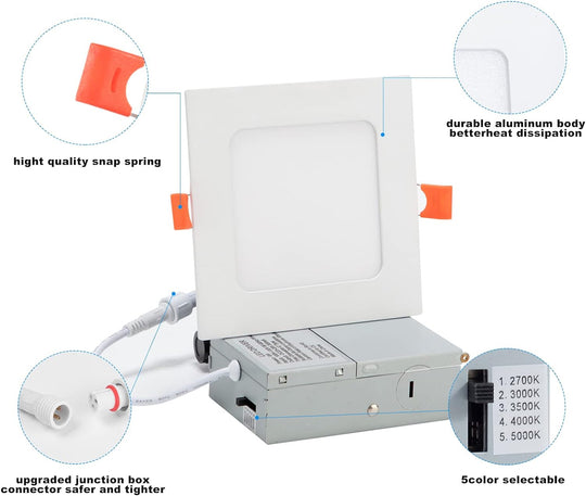 12 Pack 4 Inch 5 CCT 12W Ultra-Thin LED Recessed Ceiling Light with Junction Box (VA40)Item is new and unused. Please anticipate signs of handling. Outer packaging may have cosmetic imperfections/damage - does not affect the...Regular price $33.00Quick view -