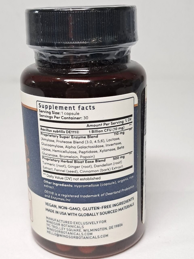Windsor Botanicals Bloat Relief Probiotic and Digestive Enzymes - 30 Capsules