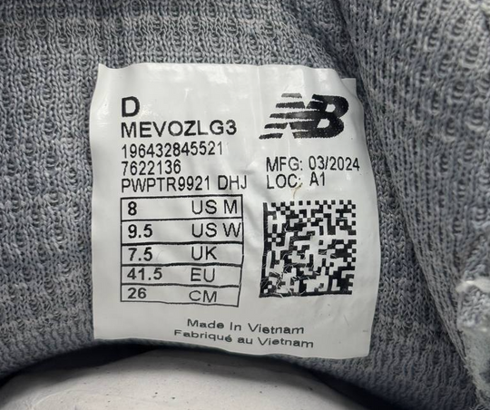 Shoe Shaft Style: Low TopStyle Code: MEVOZLG3Closure: Lace UpUS Shoe Size: 8EU Shoe Size: 41.5Color: Graphite/Aluminum Grey/Silver MetallicBrand: New BalanceDepartment: MenType: AthleticModel: Fresh Foam X EVOZ v3Style: SneakerOutsole Material: RubberShoe Width: DCountry/Region of Manufacture: VietnamUpper Material:...Regular price $28.80Quick view -