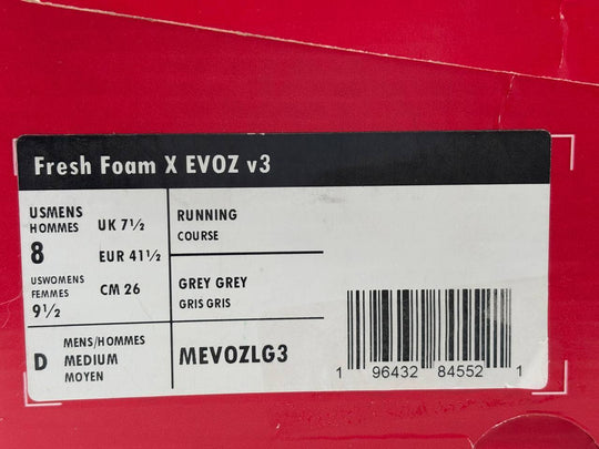 New Balance Men's Fresh Foam X Evoz v3 Gray Running Shoes, US 8 D